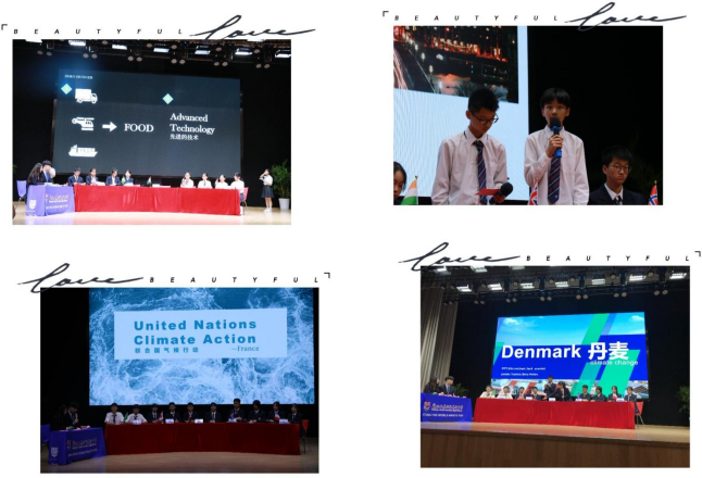 在模联会议现场,从零饥饿,到气候行动再到优质教育的议题。美国、英国、索马里、苏丹、巴基斯坦等共 15 个国家代表队的小发言人们穿戴整齐、依次拿着自己国家的旗帜和名牌坐在了演讲台上,落落大方、从容不迫,用流利的英语配合着内容丰富的 PPT 演说着代表国家对各类国际话题的立场与观点。