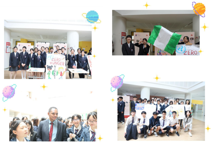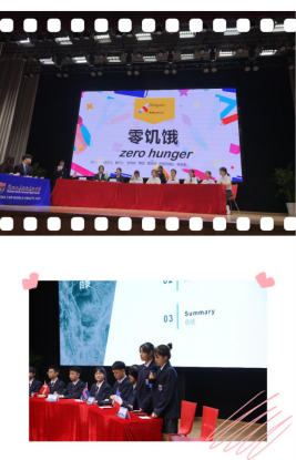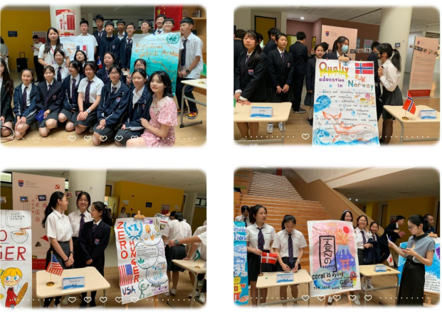 苏州北美外国语学校的学生们分组模拟十五个国家代表队,就零饥饿、气候行动和优质教育这三个联合国的可持续发展目标,分别进行国家形象文化展示、演讲与解说。